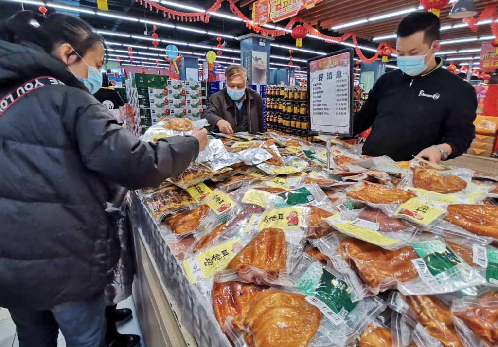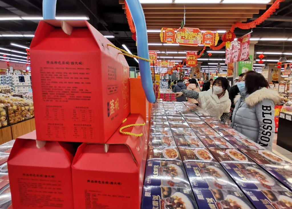三秦都市报—三秦网讯(记者 王晓峰)春节临近,年味渐浓,不少西安市民开始置办年货。1月31日,记者走访西安各大超市了解到,节前西安市场米、面、肉、蛋、油、蔬菜、水果等货源充足,价格相对平稳,呈现购销两旺的好势头。