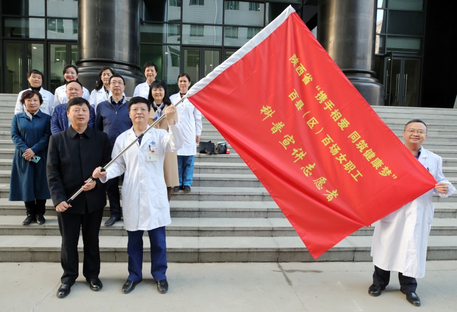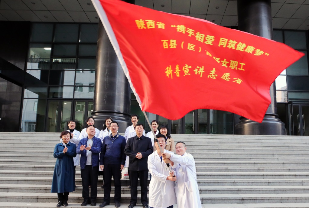 三秦都市报-秦闻讯 (通讯员 缑永强 李晨皎 记者 阮班慧) 3月3日,在“三 · 八”国际妇女节来临之际,由陕西省教科文卫体工会主办,陕西省医学会科普分会、西安交大一附院和县域大健康”融媒体承办的全省市、县级医院“携手相爱·同筑健康 ”百县 ( 区 ) 百场女职工健康讲座活动,在西安交大一附院拉开启动序幕,并进行授旗仪式。陕西省教科文卫体工会主席徐富权,陕西省医学会科普分会主委孙学军、副主委王健生、常委张颖,西安交大一附院工会、女工委的领导和专家以及甘泉、洋县、勉县、城固、南郑、西乡等 7 家县医院院长参加了启动仪式。