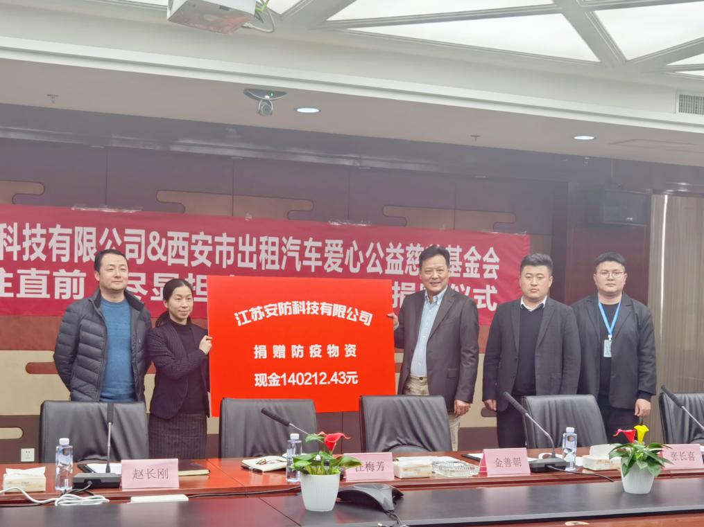 三秦都市报-三秦网讯 近日,江苏安防科技有限公司向西安市出租汽车爱心公益慈善基金会捐赠资金14万余元,为疫情期间坚持在一线工作的从业人员提供抗疫支持,并以视频会议的形式,举行了主题为“疫往直前 尽显担当”的线上捐赠仪式。