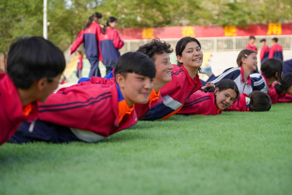 ↑4月10日,在阿图什市硝鲁克中学,队员们在进行训练。新华社记者 徐宏岩 摄