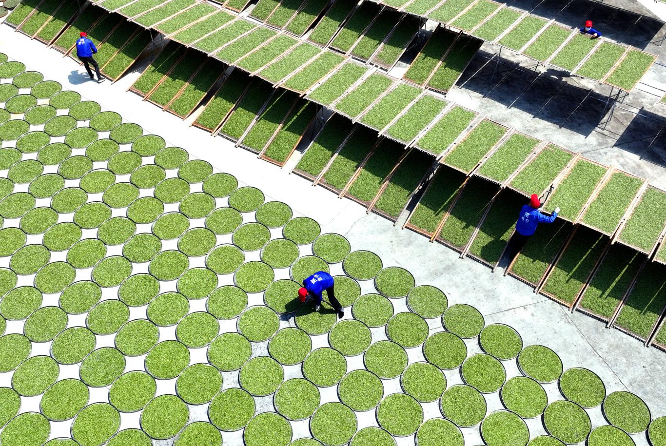 茶企工作人员正在晾晒白茶。王旺旺 摄