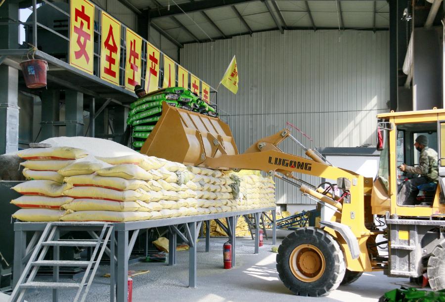 4月4日,在北大荒集团黑龙江格球山农场有限公司,农业工人在卸运肥料。新华社发(陆文祥 摄)