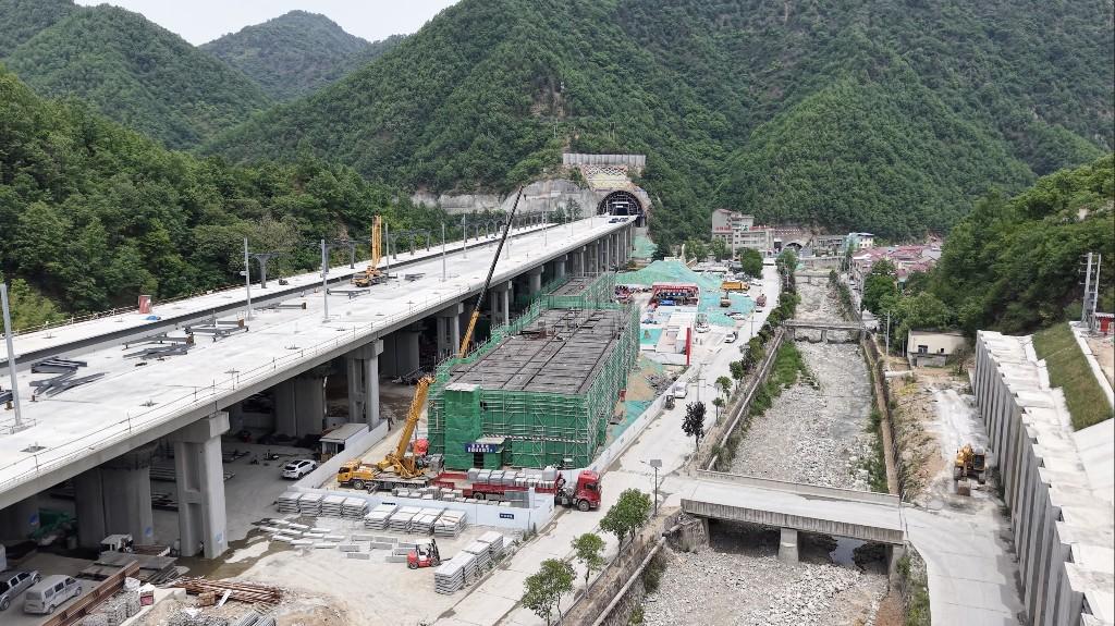 李战江透露:“截至目前,全线20座隧道已全部贯通,桥梁工程进度达87.1%,无砟轨道完成设计的5.9%,新建6座站房均已全面开工。”