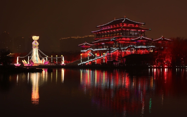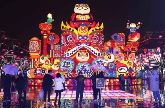 当晚,曲江新区37组新春灯组同时点亮,分布在城墙、大唐不夜城、大唐芙蓉园、大明宫国家遗址公园和易俗社文化街区,这些花灯将汇聚成夜色流光,再一次点亮西安、点亮新春,让市民群众感受到华灯初上、长安依旧的新春氛围。