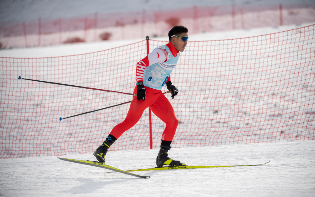 2021年11月22日,吐尔松江在2021-2022国际雪联越野滑雪积分系列赛温泉站男子个人10公里(自由技术)的比赛中。新华社记者胡虎虎摄