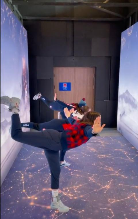 奥地利运动员莉萨·舒尔特在视频中表演了一番“内心戏”——前一秒还在纪念品店里纠结,下一秒就把“熊猫帽”反复向大家展(显)示(摆)。
