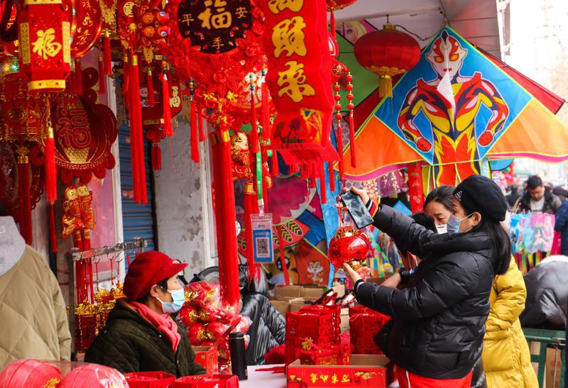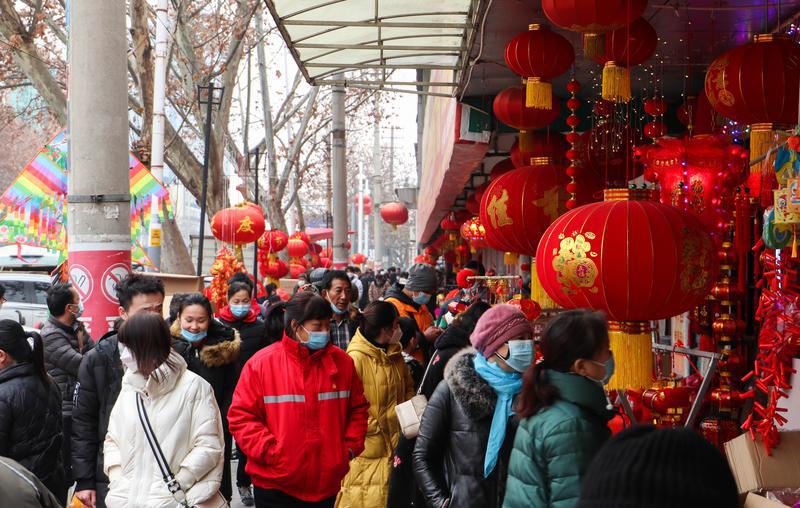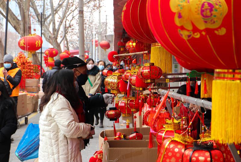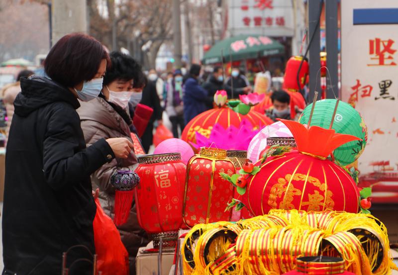2月10日,在西安市新城区长缨西路灯笼市场,市民在选购灯笼。随着元宵佳节临近,各种手工传统灯笼和造型别致的花灯备受消费者青睐。