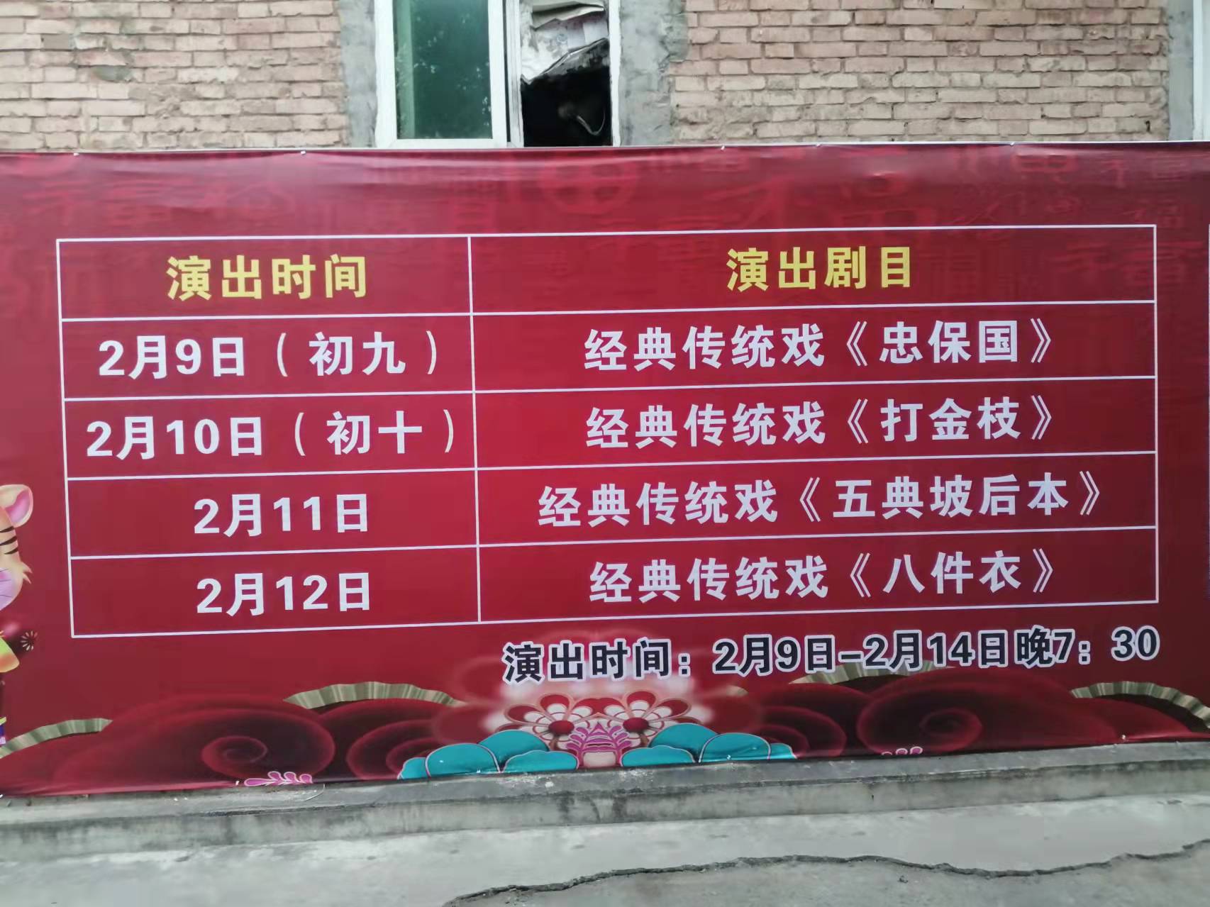 过大年,看大戏。2月9日(正月初九)晚7:30,在渭南市临渭区草市巷儿童影剧院,渭南市秦腔剧团“庆新春 迎元宵”一元剧场惠民演出拉开序幕,当天演出秦腔传统剧目《忠保国》。据了解,此次演出将持续至正月十五。正月初十至正月十三每晚7:30,在儿童影剧院演出本戏《打金枝》《五典坡》《八件衣》《双官诰》,票价一元,现场购票。正月十四晚7:30,在文化艺术中心渭南大剧院演出经典剧目《铡美案》,最低票价30元,现场购票。正月十五上午11:30,在渭南市文化艺术中心广场户外演出《对银杯》,免票观看。赶紧看戏来!