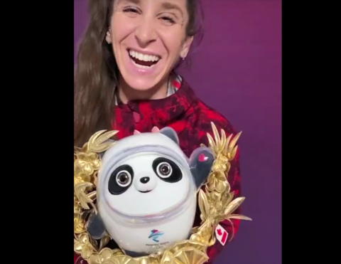 在此前的结束的北京冬奥会速度滑冰女子团体追逐决赛中,布隆丁所在的加拿大队夺得冠军。在16日发布的视频中,布隆丁一开始谈到在比赛中拿到了金牌,随后将话题转向手中抱着的金墩墩。布隆丁不仅开心地和金墩墩对视,还表示很欢迎这一吉祥物加入自己的家庭,成为新的成员。在视频结尾,她还轻轻地捏了捏金墩墩的尾巴,并配文“新的家庭成员”。