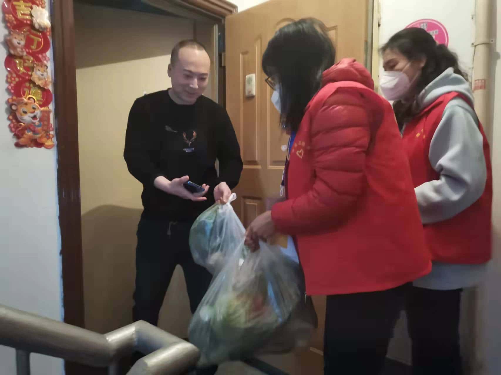 三秦都市报——三秦网讯(刘万里 杨宏伟)3月16日上午,宝鸡市陈仓区林业局志愿者张华杰、周红波、齐爱辉三名同志得知该区永盛苑小区一位老人长期患有脑梗等慢性病,行动不便,子女不在身边,疫情给老人的生活带来更多不便时,立即联络区疫情防控工作药品供应专班,第一时间将老人需要的药品送到手上。