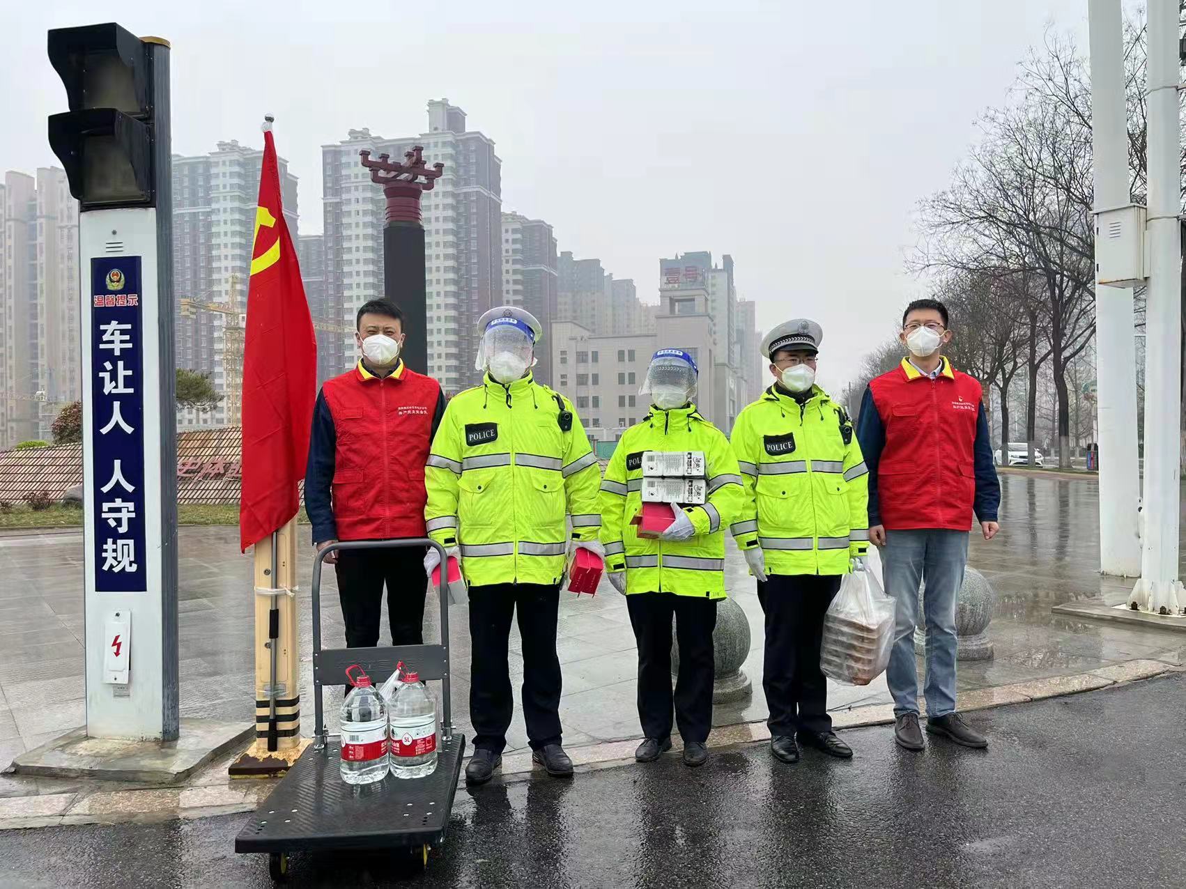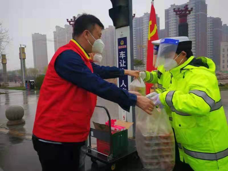 该公司地处铜川新区正阳路与华夏南道的十字交界处,距离划定的中风险地区幸福里小区、鸿翔逸境小区不足500米。随着周边地区疫情形势进一步升级,交通管控进一步加强,附近的十字路口增设了交警执勤岗,24小时负责道路交通安保工作。由于近期降雨降温,致使新区早晚的气温偏低,给交警站岗执勤提出了新的考验。3月21日,该公司党员志愿者们立即组织协调,为持续奋战的执勤交警送去了热饭、热水、毛巾等“爱心物资”以及随时可提供休憩的便民服务室,并向兢兢业业、日夜坚守的交警们表达了敬意。