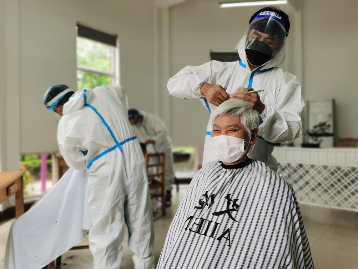 日前,一群理发师化身“大白”,为上海市松江区赛杰苑小区近百位居民义务理发。伴随小区老年活动室里“咔嚓”“咔嚓”的剪刀声,解决“头顶”大事的居民笑逐颜开。