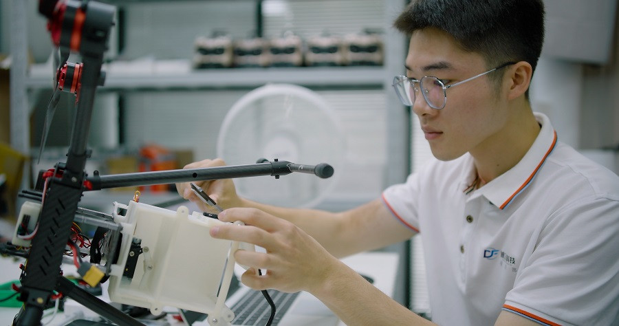 如今的梁振纬,已经是独当一面的研发工程师了,主要负责无人机教具的开发、竞赛项目的研究。