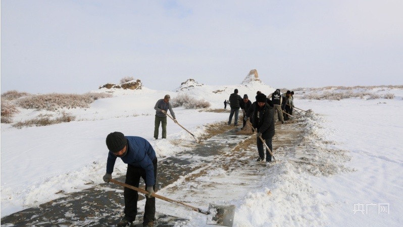 清理克亚克库都克烽燧遗址的积雪(央广网发 受访者 供图)