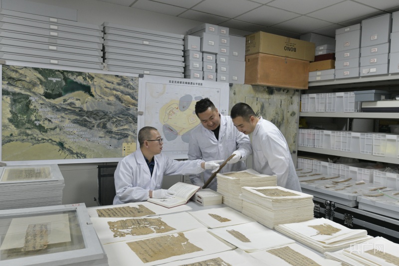 正在对克亚克库都克烽燧遗址出土的文书进行整理(央广网发 受访者 供图)