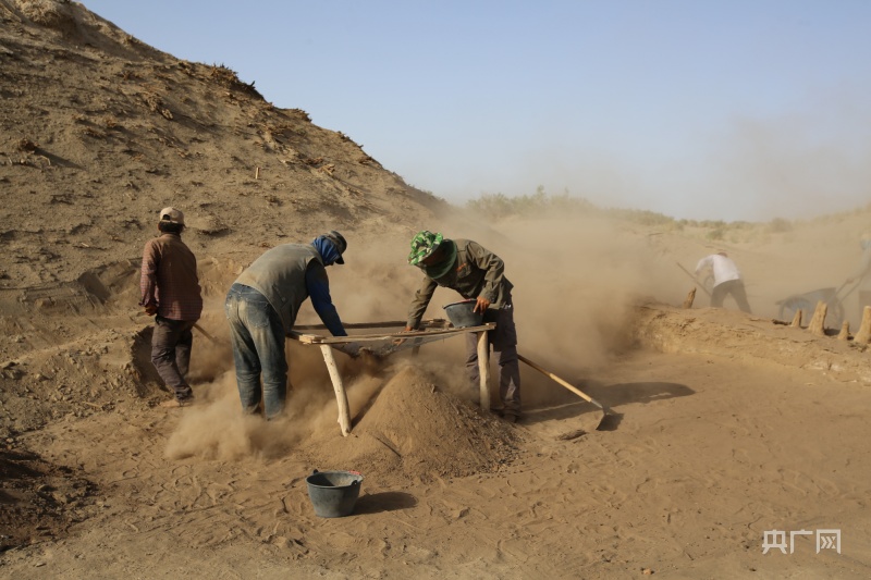 正在对挖掘现场一遍一遍地过筛子(央广网发 受访者 供图)
