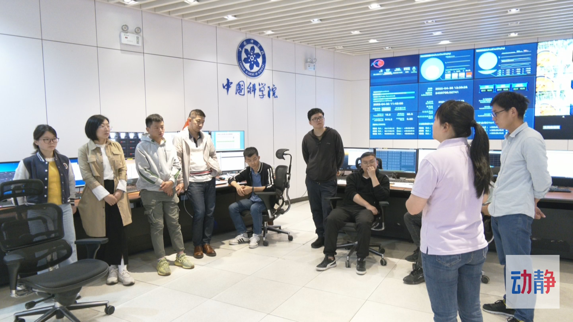 去年,测控工程师孙纯(一排左三)与宋本宁(二排右一)代表团队通过视频向习近平总书记汇报工作。(央视总台央视记者程铖拍摄)