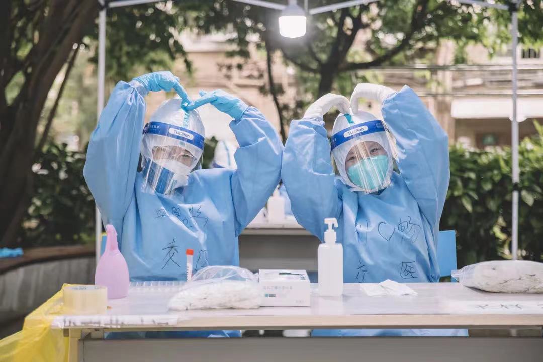 21级临床检验诊断学研究生徐扬是上海人,从4月24日开始为虹口社区居民核酸采样,她的团队已完成16万余次的采样量。“2020年我有幸在瑞金医院欢迎援鄂英雄回家,‘不是生而英勇,只是选择无畏’,深深打动了我。接力棒传来,我们有责任挑起大梁。为家乡做贡献,值得骄傲一辈子!”她说。