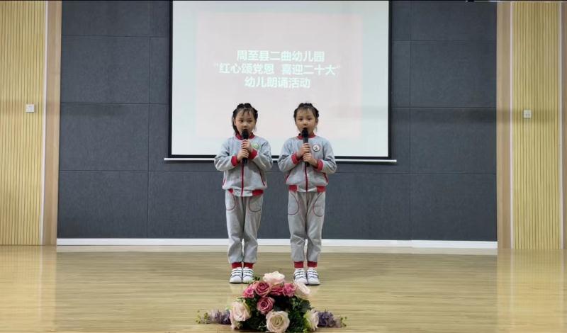 三秦都市报—秦闻讯(商兴国 记者 赵福生)为了庆祝六一国际儿童节,西安市周至县二曲幼儿园将了解党、热爱党、心向党、跟党走的情怀融入到常规保育教育中,开展了师幼朗诵等系列活动。师生们通过《七律长征》《我爱你中国》《我骄傲我是中国娃》《小英雄雨来》《可爱的中国》等的朗诵,抒发浓浓的爱国之情。