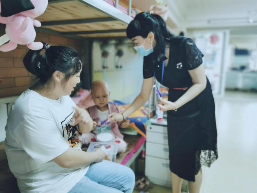 红十字会工作人员专注地听常向阳女士讲心羽爱心家园发起的原因,了解家园目前面临的困难,陪孩子们聊天、玩耍,了解孩子们的病情及康复情况,鼓励患儿家长要相信孩子,相信未来,保持积极乐观的心态。