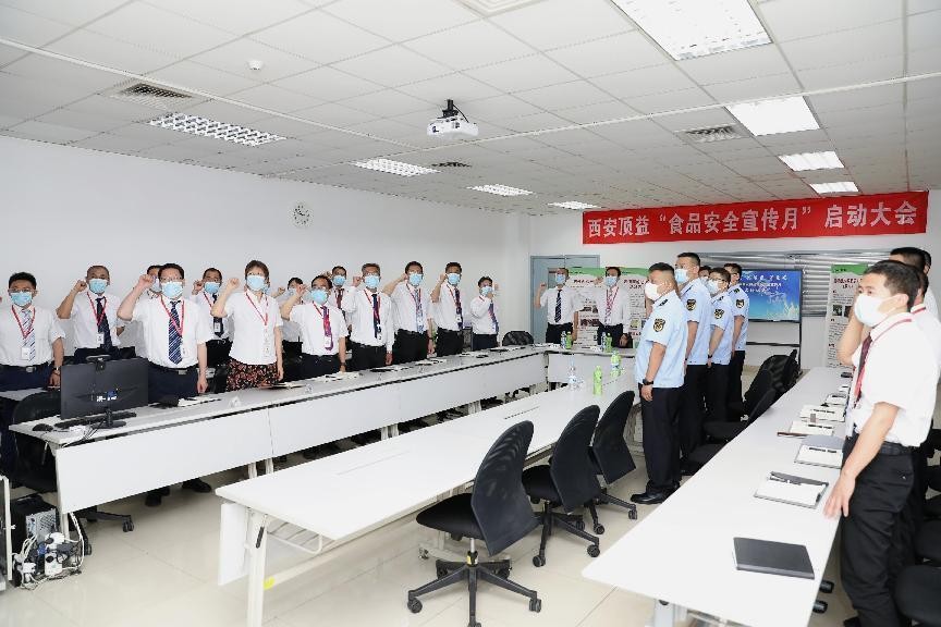 三秦都市报-三秦网讯(记者 李海涛 李佳)“我承诺:严格标准,坚守底线,源头管理,接受监督,全体动员,排查隐患,聚焦客诉,提升服务,建立零起点、零隐患、零不良的三零工厂。”6月2日,西安市市场监督管理局、经开区市场监督管理分局相关领导走进食品生产企业的工厂,严把“安全关”。带着各级领导的期许与嘱托,与会全体员郑重宣誓承诺严把一线食品安全质量关,用行动拉开“西安顶益食品安全宣传月”帷幕。