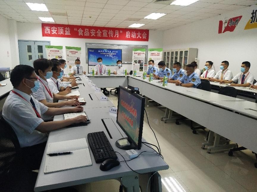 在当天举行的“西安顶益食品安全宣传月”启动仪式现场,在听取了企业有关食品安全防范和落实的状况后,西安市市场监督管理局韩金旗处长强调:“充分认识当前形势,管好食品安全,落实企业主体责任,守住企业生存底线,未雨绸缪、防微杜渐,预防任何食品安全事件的发生。强化责任落实,制定完善的食品安全管理制度。“建机构、明职责、有人员、履责任、建追溯”,逐步构建企业的诚信体系。经开分局杨涛副局长,对企业食安管理给予肯定后同时强调,“要紧扣国家食品安全宣传周主题‘阳光下的盘中餐’”展开此次活动,将食品安全意识深深植入每一位员工心中,切实做好源头把控,全程管理。通过“守底线、查隐患、保安全”专项行动,生产者、经营者、监管部门等各相关方要共同参与,共同努力,保障口中食、盘中餐的安全。