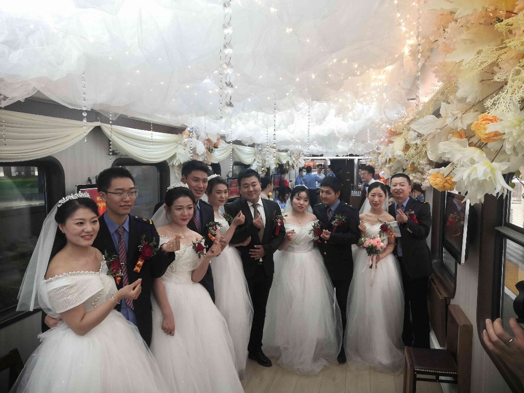 “我们认识三年了,从相识相恋相知到步入婚姻殿堂,经历了很多,也成长了很多。今天,在这趟主题列车上,在单位同事、朋友的见证下,我们举行了神圣而又特别的婚礼,让我们很感动,单位的关心关爱给予了我们家庭般的温暖,身为其中的一份子感到很幸运!”李吉双子感慨的说道,李吉双子和闫慈航分别是动车一队的一名列车员和列车长,刚刚新婚的他们报名参加了此次的集体婚礼。