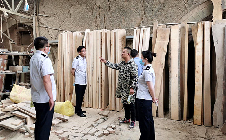 三秦都市报-三秦网讯(崔杰 孟晓丽 记者 陈奋翔)为进一步加大涉木企业、市场、苗木、花卉生产经营单位的林业植物检疫监管机制,严厉打击各类植物检疫违法案件。近日来,咸阳市长武县开展林业植物检疫执法专项行动,县林业工作站、木材检查站负责人深入木材加工厂、苗木花卉基地、涉木企业等开展专项执法大检查。