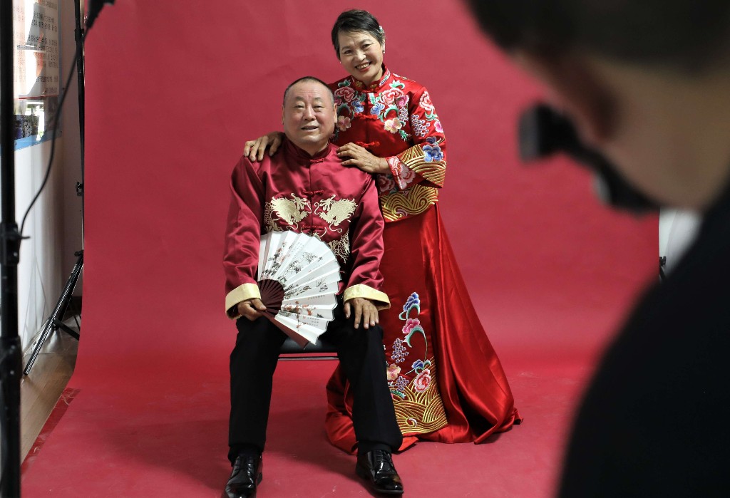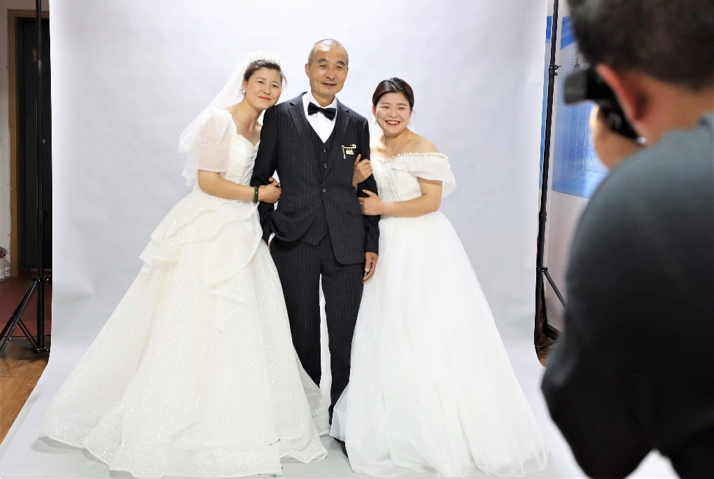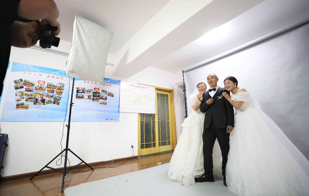 明堂环卫有限公司雁塔分公司经理赵娟说:“按照年满60周岁、婚龄满30年的标准,我们今天邀请到了辖区9对环卫工夫妇,非常感谢陕慈协初木公益志愿者服务队和多米印象影楼,这样的机会真的很难得。”