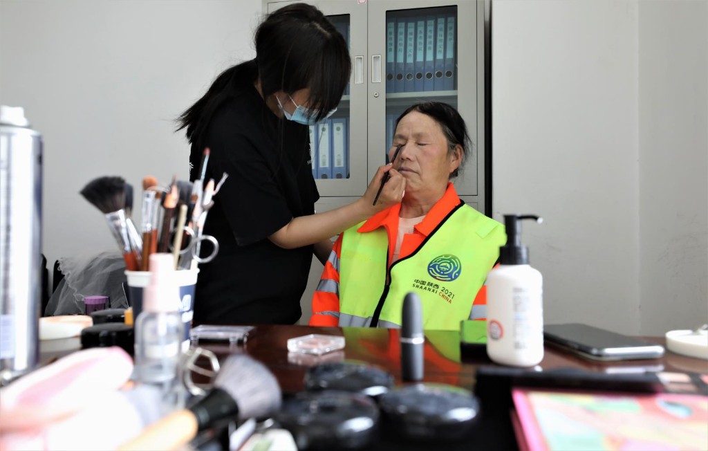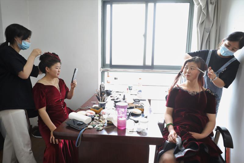 6月9日,在陕西明堂环卫有限公司雁塔分公司,正在等候化妆的环卫工师傅,大伙儿非常期待,甚至有点紧张。