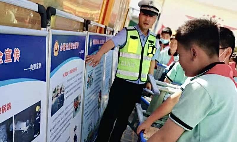 活动中,宣传民警用通俗易懂的语言,采用你问我答、观看事故案例展板等方式,向师生们讲解交通安全知识和常识,教育大家如何安全过马路,在马路上不要追逐打闹,未满十六周岁不许驾驶电动车等。