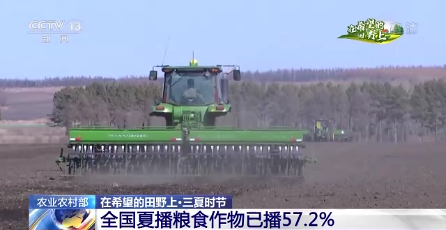 农业农村部最新农情调度显示,全国夏播粮食作物已播57.2%,其中中稻栽插六成半、夏玉米播种五成半、夏大豆播种过四成。