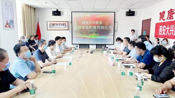三秦都市报-三秦网讯(记者 阮班慧)为充分落实好优质医疗资源下沉,充分发挥三甲医院的优势,助力基层医联体单位提升诊疗水平,让老百姓在家门口就能享受到三甲医院的医疗服务,6月18日上午,来自陕西的36家一级医院、二级医院正式成为西安大兴医院的医联体合作成员单位,并在西安大兴医院举行了签约和授牌仪式