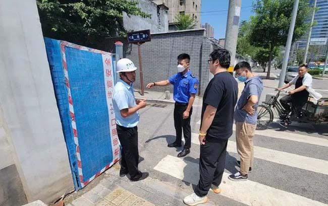 三秦都市报-三秦网讯(通讯员 宇文肖泽 赵伟姣)为深入贯彻落实《西安市开展城市清洁行动提升 精细化管理工作水平实施方案》、《西安市“零直排小区(单位)”创建活动实施方案》,进一步提升城市精细化管理工作水平,解决占道围挡未按标准设置、私挖乱占等问题,做好全区雨污分流源头治理工作,7月20日,碑林区城市管理和综合执法局市政管理科联合市政设施养护所对部分“零直排小区(单位)”创建点位及辖区占道围挡进行检查。