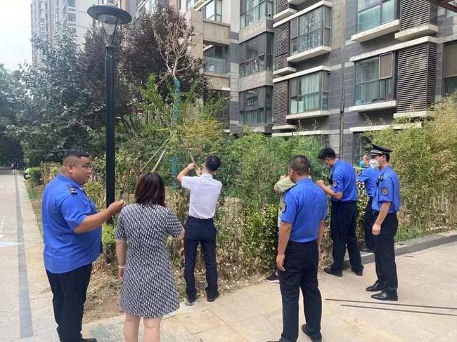执法人员深入包抓社区,对各小区存在侵占绿地、私搭乱建等现象进行摸排,发现违规现象采用现场取证、口头告知、做出承诺等措施进行查处。