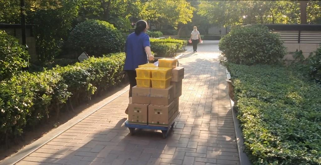 货到小区门口,再由肖娟自己用小推车拉走分发,她每天三四趟收货理货,及时给小区的左邻右舍们分货。疫情期间,小区的团购活动不仅一直没有断过,甚至比以前更频繁。当邻居将自己团购的物资发在朋友圈时,有网友羡慕地说,“想和肖娟做邻居。”