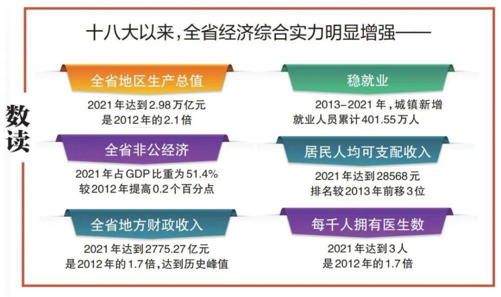 经济增长保持中高速,2013-2021年全省地区生产总值年均增长7.3%,高于全国平均增速0.8个百分点。