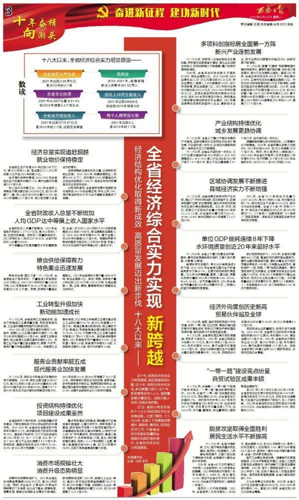 22日,省统计局发布党的十八大以来陕西经济社会发展成就。记者了解到,十八大以来,全省上下统筹推进稳增长、调结构、惠民生、防风险各项工作,不断推动经济发展实现量的合理增长和质的稳步提升,全省经济综合实力明显增强。
