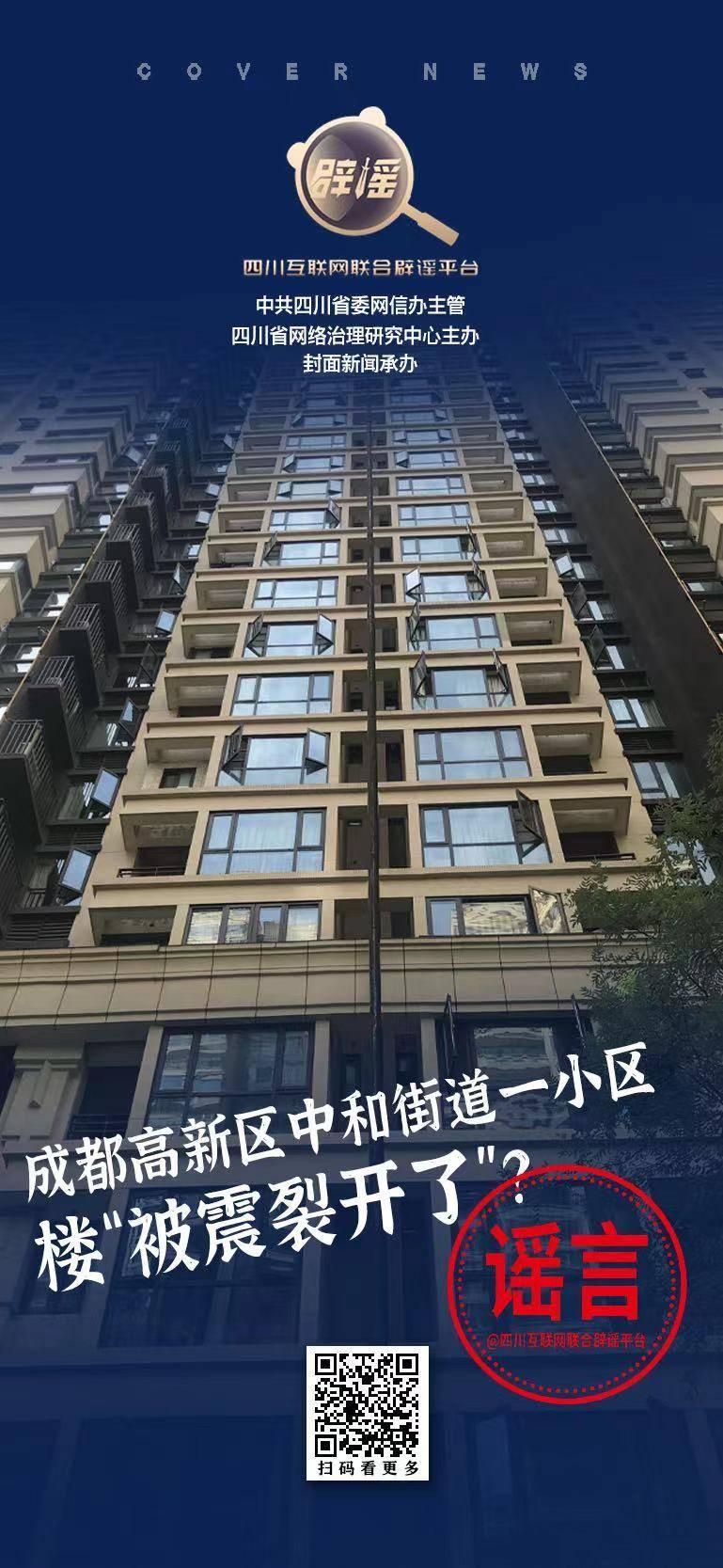 地震发生后,有网友在社交平台传播“因9月5日地震,成都北大资源颐和翡翠府楼震裂开了”等消息。事实情况究竟如何?