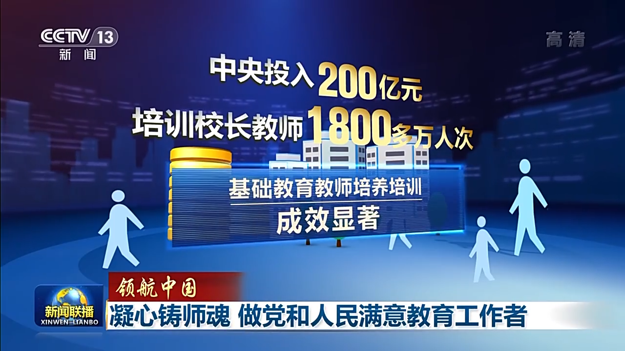 通过“国培计划”,中央投入200亿元,培训校长、教师1800多万人次,基础教育教师培养培训成效显著;推进教师岗位和职称改革,畅通教师职业发展通道,不断激发出教师队伍活力;我国教师教育体系实现由“中师、专科、本科”向“专科、本科、研究生”的三级教师教育跃升,中国特色高水平教师教育体系建立建强。