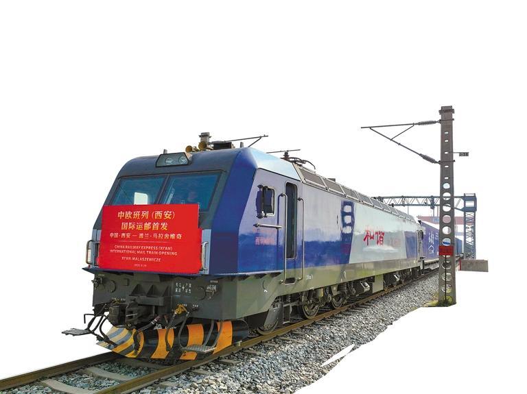 9月16日9时35分,装载着国际邮件、商业快件的中欧班列长安号从西安国际港站驶出。这是中欧班列长安号运邮专线的首发。记者 付玉玮 摄