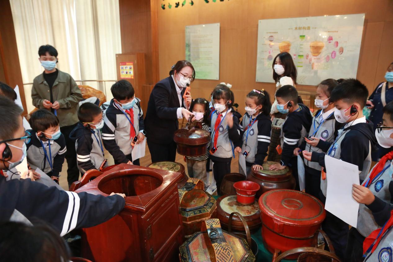活动依托博览园木材博物馆丰富的馆藏,围绕发现国粹之美,以“小木匠 大智慧”为主题,旨在传承我国优秀传统文化,科普古代木作技艺。活动当天,在博览园讲解员的带领下,学生参观了博览园的木材博物馆。展馆中,学生与五百年高龄的古夷苏木对话;了解紫檀木、花梨木等珍贵树木的价值与作用;对尽显中国漆艺精湛的乾隆剔红宝座、贴金飞天、牡丹小鸟、松鹤延年屏风等近百件清明近现代漆艺作品赞叹不已,瞻仰了木工祖师鲁班发明的锯子,深深地感受到建筑文化的博大精深。