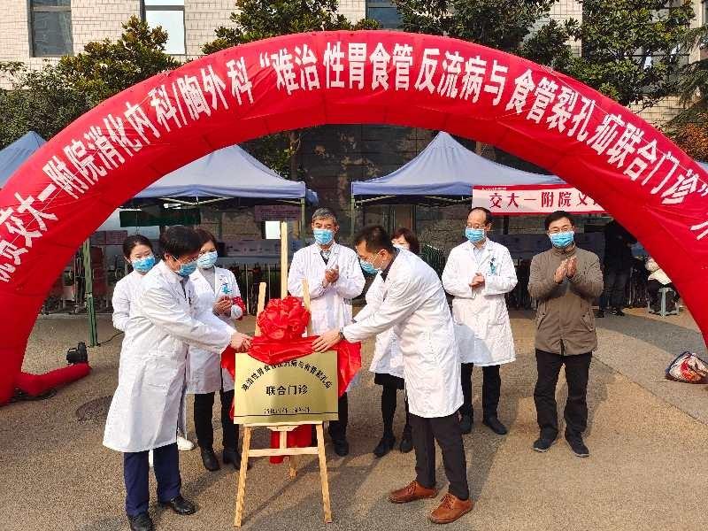 三秦都市报-三秦网讯(通讯员 李晨皎 记者 阮班慧)11月17日下午,西北首家难治性胃食管返流与食管裂孔疝联合门诊在西安交通大学第一附属医院正式开诊,揭牌仪式在该院门诊南广场举行,副院长刘青光、医务部部长李红霞、门诊部主任王瑞君、宣传部部长王睿、消化内科主任和水祥、胸外科主任张广健、付军科教授出席。仪式由胸外科副主任张勇、消化内科殷燕副主任医师主持。