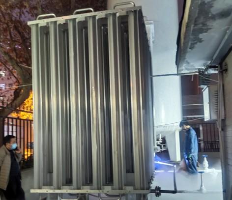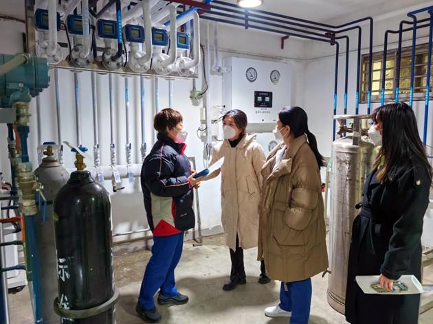 医院领导高度重视供氧问题,立即召集专题会研究对策,要求尽快拿出整改方案,确保医院氧气正常供应,全力保障患者救治的“救命氧”。1月4日、5日,王亚峰院长助理带领消毒供应科、基建办、总务部、保卫部等部门负责人多次在氧气站、东一楼、干部病房进行实地考察、评估,召开方案讨论会,集思广益,制定改善方案,讨论可行性。综合考虑安全性、工期、预期效果等因素,最终提出在氧气站新增2台分气缸,专供东片区供氧使用,在干部病房一层、二层独立设置专用氧气管道,改造项目将借助院内原有地沟、部分区域架空新增独立主管至东片区原有汇流排间,加快施工进度。同时,在原有3台气化器基础上,再新增2台300 m³/h气化器,提高气化效率。在改造工程施工阶段,采用人工运送氧气罐至病区的方式应急。