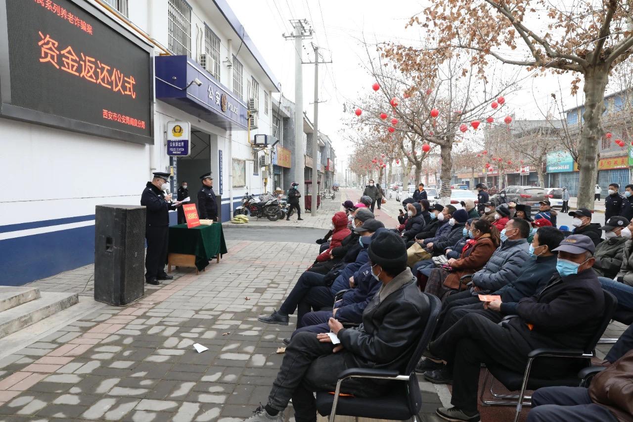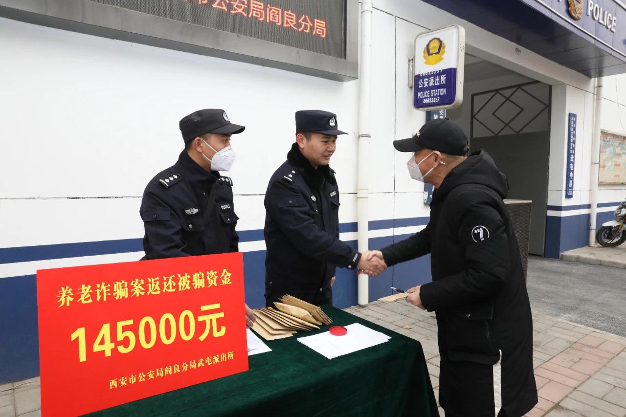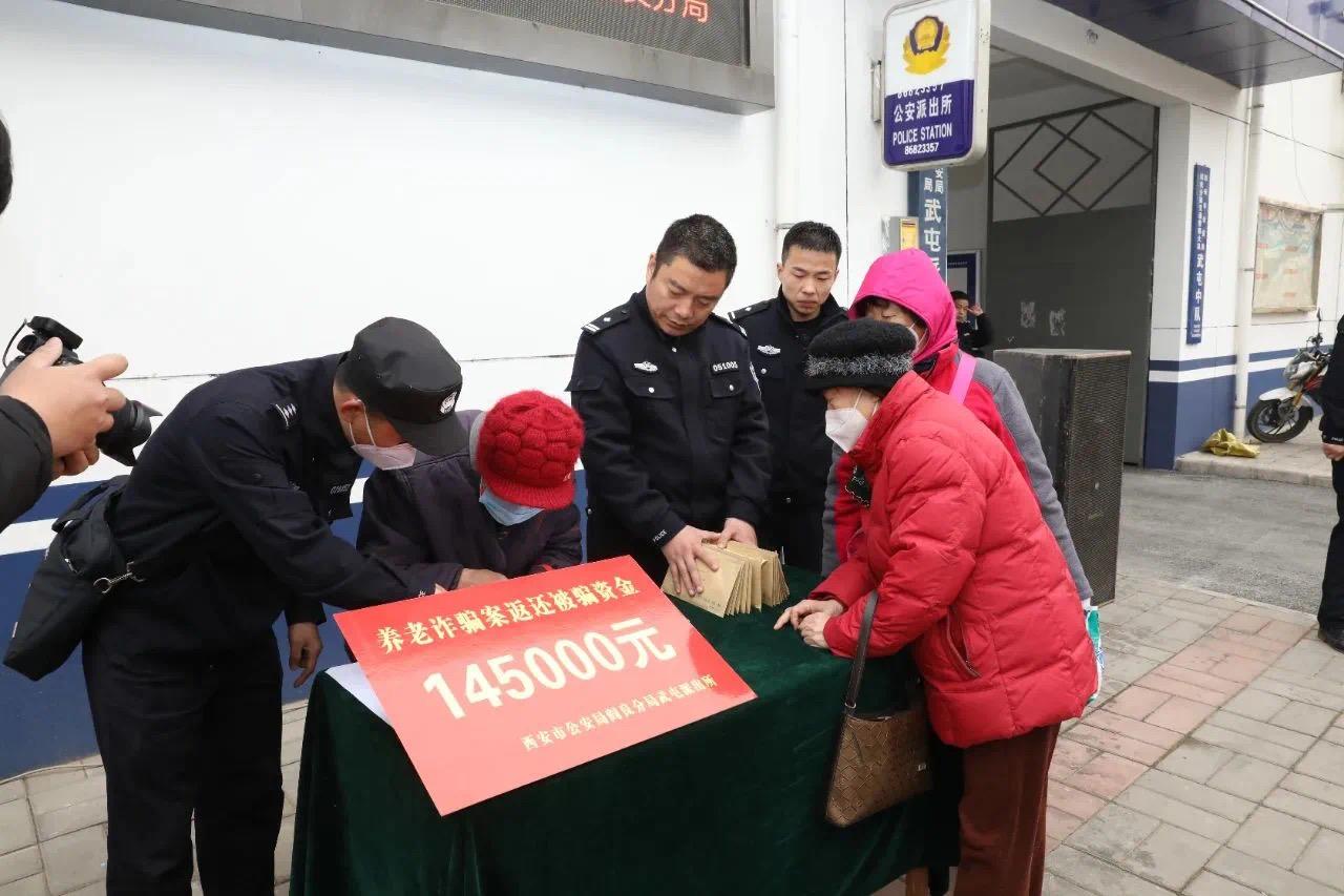 2023年1月13日下午,公安阎良分局武屯派出所举行“燕窝诈骗案件”追缴资金返还仪式,将被骗资金14.5万元返还给了受骗老人。