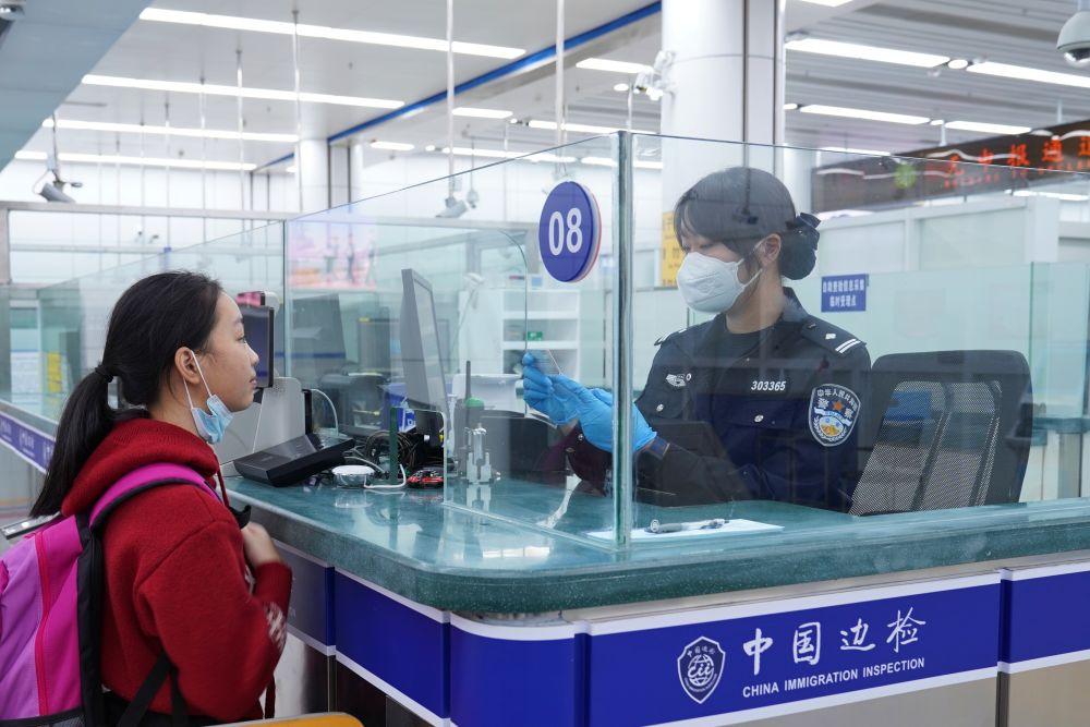 8日重新通关的深圳文锦渡口岸,喜迎春节的红灯笼挂起来了,巨幅“欢迎回家”字样温暖着游子的心。