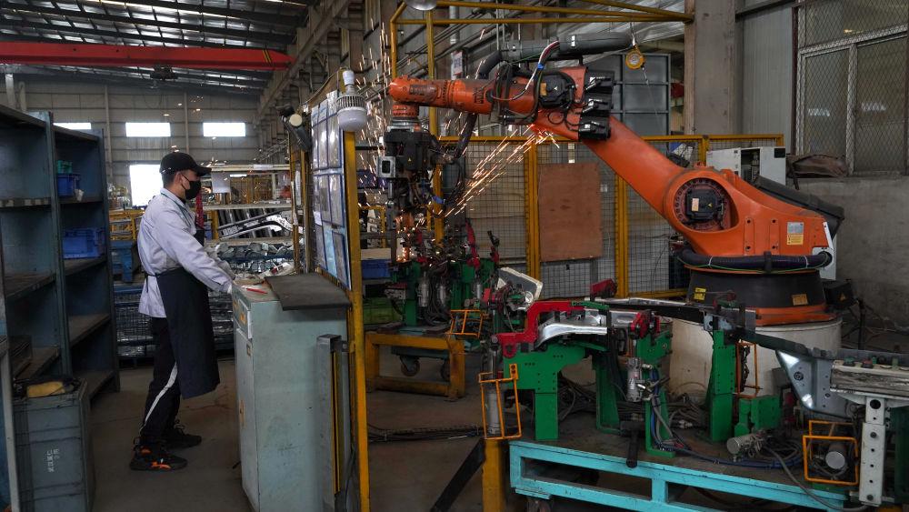 粗壮的机械臂灵活转动,裁切好的金属板材被夹放到冲压机上,伴随着一声沉闷的撞击,一个车门内板的构件便成形了。“去年我们投入8000万元对生产线进行升级,车间新增了50台智能机器人。”武汉方鼎汽车部件制造有限公司制造总监冯球林说:“公司还投资4000万元新增了一条冲压线,本月就能完成安装投入使用。”