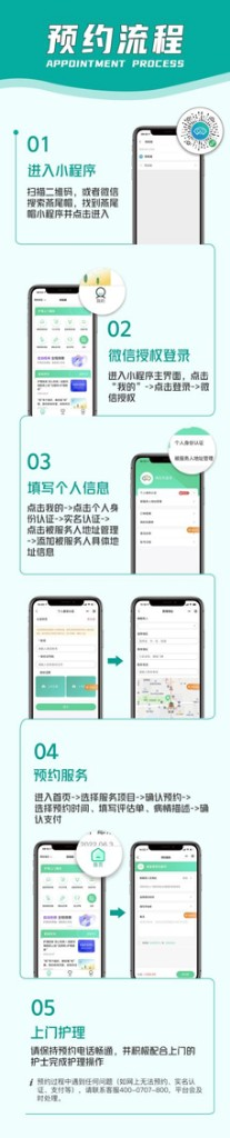 如果您或家人有服务需求,可按如下流程进行预约或关注西安市长安区医院公众号进行预约。