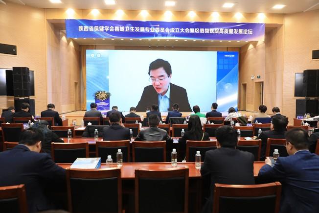 陕西省卫生健康委员会二级巡视员于春富、西安市卫生健康委员会副主任丁力对县域卫生发展专业委员会的成立表示祝贺。他们指出学会的成立搭建起了一个集众智、汇众力,开放交流的学术平台,也是加快实现“十四五”卫生健康事业发展的“智囊团”,希望大会为区县级医院高质量发展碰撞出新的思想火花,使区县级医院更好发挥医疗服务“主力军”作用,全面保障人民群众健康和生命安全。