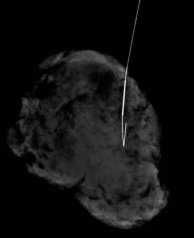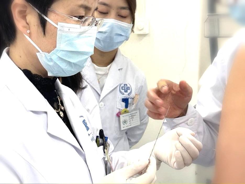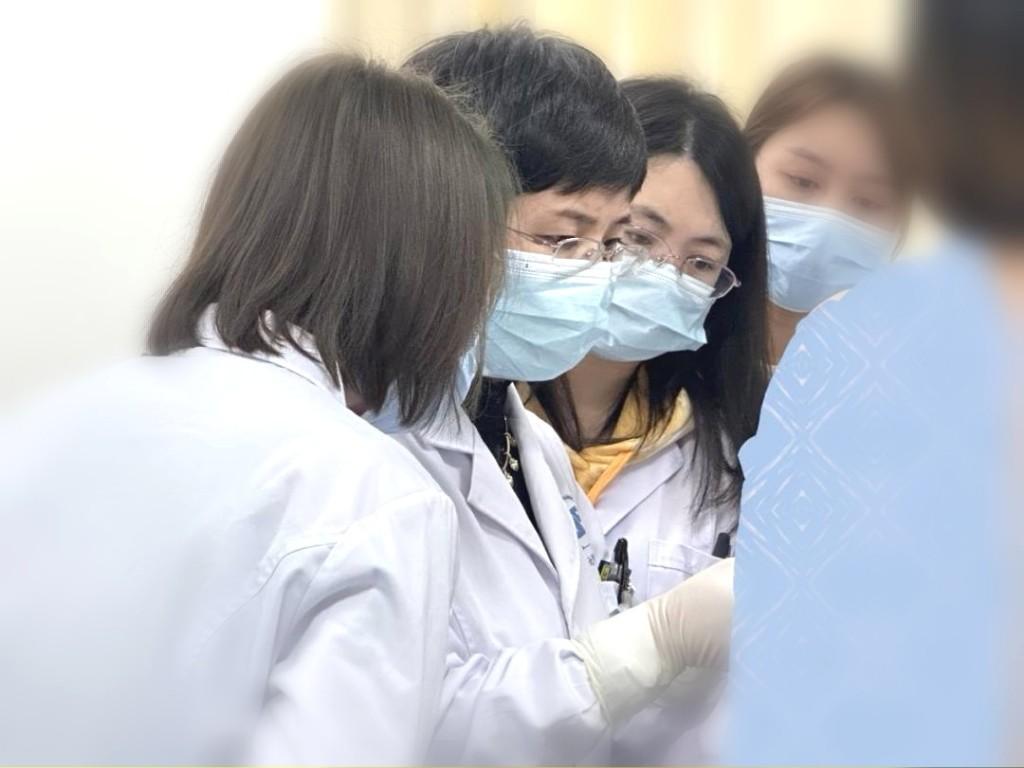 在技术员张云及黄纯莉等医师的通力配合下,定位针准确穿入病灶内,并调整好位置,为手术的顺利进行做好前期保障工作。